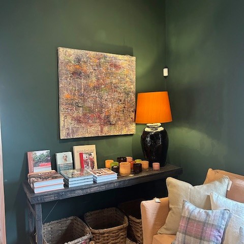Deze werken hangt in de prachtige interieurwinkel Mr. Poppins in hartje Damme. Het schilderij sluit mooi aan bij de warme, eigenzinnige sfeer van de winkel en versterkt die unieke mix van creativiteit, karakter en rust die Mr. Poppins zo bijzonder maakt.